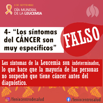 Los síntomas de la leucemia son indeterminados, lo que hace que la mayoría de las personas (83%) no sospeche que tiene cáncer antes del diagnóstico y piense que los síntomas respondían a una infección común, a un estilo de vida acelerado o al envejecimiento.